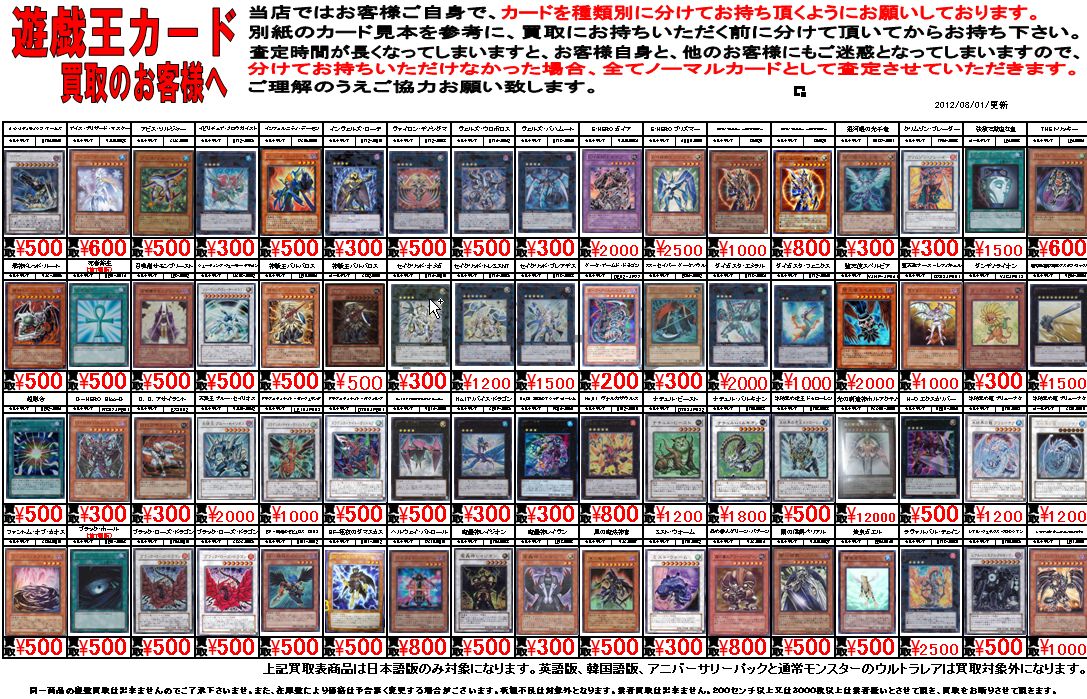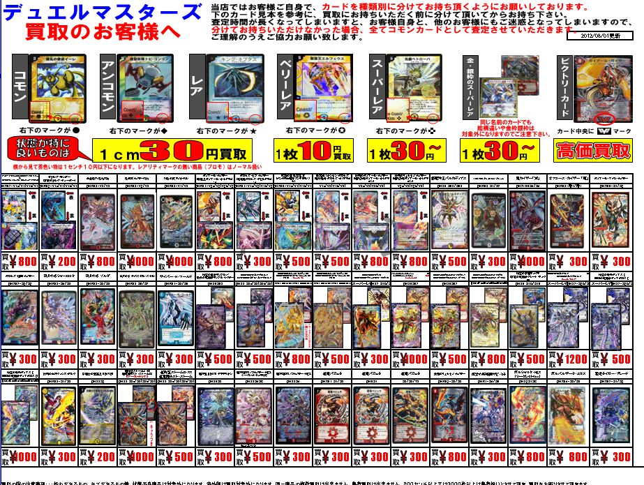 埼玉県上尾市のカードショップ:トレカショップカードナイト買取表