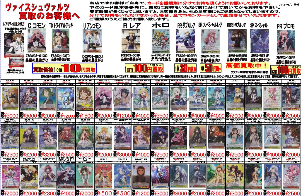 トレカショップカードナイト買取表です。
